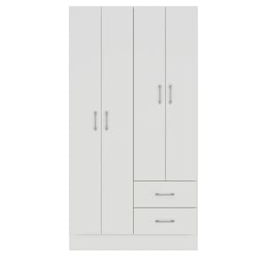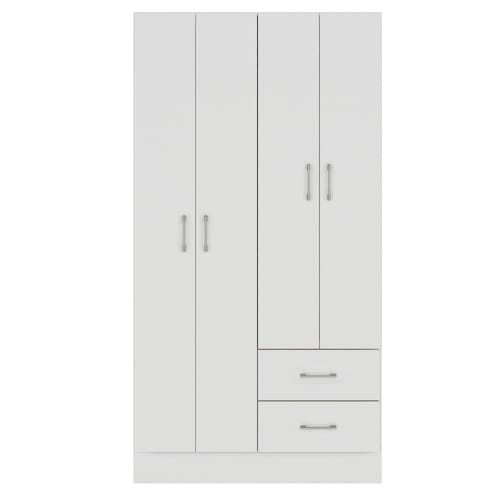 Conta com 4 portas de bater com dobradiças metálicas, 2 gavetas com corrediças plásticas e 2 cabideiros de madeira revestidos na cor cinza, ideais para acomodar roupas longas e curtas. Possui ainda 1 prateleira interna com ótima capacidade de organização.