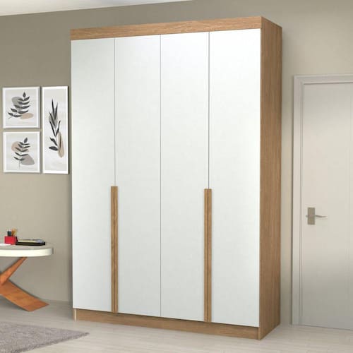 Dê adeus à bagunça e à desordem! Com o Guarda-Roupa Marrocos de 4 portas 100% em MDF, seu quarto se transformará em um espaço organizado e aconchegante. Perfeito para quem busca praticidade ao encontrar suas roupas e acessórios. Não perca essa oportunidade de tornar seu ambiente mais confortável e funcional. Aproveite! Acabamento da Prateleira: Pintura UV Escala de Brilho da Prateleira: Fosco Possui Cabideiros: Sim Acabamento da Gaveta: Pintura UV Escala de Brilho da Gaveta: Fosco Tipo de Corrediça: Metálica Telescópica Possui Organizador de Gaveta: Não Acabamento da Porta: BP Melamínico Escala de Brilho da Porta: Semi-Brilho Material do Puxador da Porta: MDF Acabamento dos Pés: Pintura Altura dos Pés: 10 cm Altura Máxima dos Pés: 10.0000 Ambiente Principal: Quarto codigo_ean: 7909903630983 Complexidade da Montagem: Alta: deve ser montado por um montador especializado Cor: Inovata/Branco Supremo/Cinamomo Mel Cor do Produto: Inovata/Branco Supremo/Cinamomo Mel Cor Interna: Nevaska Escala de Brilho: Fosco Gaveta com Chave: Não Guarda-Roupa Suporta Até (kg): 155 kg Itens Inclusos: 1 Guarda Roupa Marrocos, Kit de ferragem para montagem Linha ou Coleção: Marrocos Manual de Montagem e Instalação: https://product-hub-prd.madeiramadeira.com.br/899976/documents/0858c273-60bb-449f-bc33-c7ede3438233ualroupeiromarrocos4portas.pdf Material da Gaveta: MDF Material da Porta: MDF Material da Prateleira: MDF Material dos Pés: MDF Material Principal: MDF modular: Não Necessita Montagem: Sim Origem do Produto: Nacional Peso: 157,8 kg Peso Máximo por Gaveta: 10 kg Peso Máximo por Prateleira: 15 kg Possui Calceiros: Não Possui Espaço para Vestidos Longos: Não Possui Espelho: Não Possui Espelho Interno: Não Possui Ganchos: Não Possui iluminação: Não Possui Nichos: Não Possui Painel de TV: Não Possui Pés: Rodapé Possui Portas: Sim Possui Prateleiras: Sim Possui Sapateira: Não Produto Montado: Sim Quantidade de Gavetas: 03 Gavetas Quantidade de Prateleiras: 07 Prateleiras Recomendações de Uso, Manutenção e Limpeza: Limpar com pano seco e limpo. Sapatas Niveladoras: Não Sistema de Montagem: Parafusos, Cavilhas, Minifix Suporta Até (kg): 155 kg Tipo de Corrediça da Gaveta: Metálica Telescópica Tipo de Dobradiça/Corrediça da Porta: Alumínio Tipo de Gaveta: Interna Tipo de Guarda-Roupa: Solteiro Tipo de Puxador da Gaveta: Não Possui Tipo de Puxador da Porta: Externo