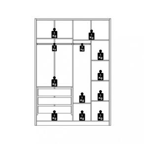 Características: Estrutura em MDP e MDF Pintura com acabamento Print Wood Atóxico e Anti Mofo Bordas com acabamento Soft PU 4 Portas 3 Gavetas Cada Gaveta suporta peso de 3kg Cada prateleira suporta 5kg Corrediça telescópica