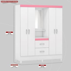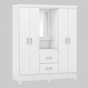 Com quatro portas e duas gavetas espaçosas, oferece amplo armazenamento para roupas, acessórios e objetos pessoais.