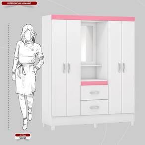 Com quatro portas e duas gavetas espaçosas, oferece amplo armazenamento para roupas, acessórios e objetos pessoais.