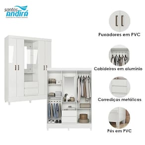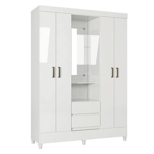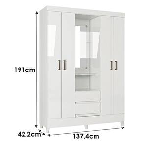 Guarda Roupa Solteiro 4 portas com pés Capelinha Fit Branco Brilho - Santos Andirá