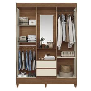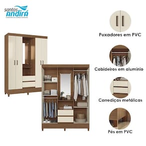Guarda Roupa Solteiro 4 portas com pés Capelinha Fit Jequitibá Off Acetinado - Santos Andirá