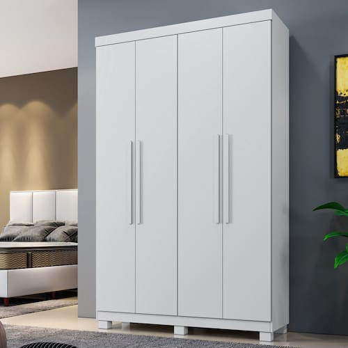 Guarda Roupa Solteiro 4 Portas com Pés Milão Benetil. Transforme seu quarto com o Roupeiro Milão! Robustez, estilo e praticidade em um só móvel. Produzido em chapa de 15 mm para máxima durabilidade, o Roupeiro Milão oferece 4 portas, 2 prateleiras espaçosas, 3 gavetas com corrediças telescópicas e cabideiro em alumínio, tudo para manter suas roupas organizadas com muito mais elegância. Com pés inclusos, puxadores modernos e um acabamento impecável, ele é a escolha perfeita para quem busca qualidade e ótimo custo-benefício.