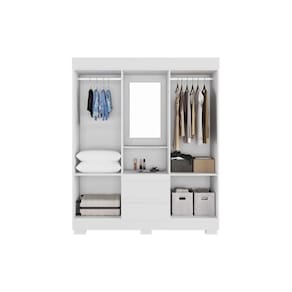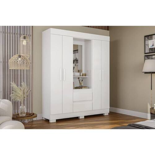 Tipo de Cabideiro - Aéreo Material dos Cabideiros - Cabideira Metálico Tipo de Porta do Guarda-Roupa - Portas de Bater Material das Portas - Portas em MDP Tipo de Dobradiças - Dobradiças Metálicas Quantidade de Portas - 4 Portas de Abrir Tipo de Espelho - Espelho Externo Quantidade de Espelhos - 1 Espelho Material das Gavetas - Gavetas em MDP Tipo de Corrediça - c/ Corrediças Telescópicas Quantidade de Gavetas - 2 Gavetas Tipo dos Pés - Pés em MDP Quantidade de Pés - 6 pés Material das Prateleiras - Prateleiras em MDP Quantidade de Prateleiras - 3