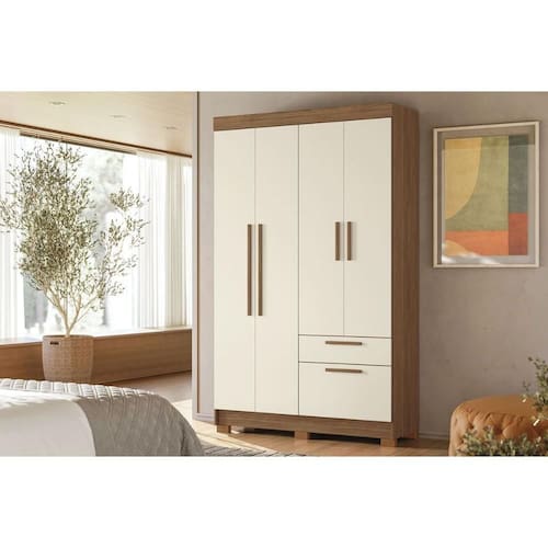 Material do Calceiro - Calceiro Metálico Material dos Cabideiros - Cabideira Metálico Tipo de Porta do Guarda-Roupa - Portas de Bater Quantidade de Portas - 4 Portas de Abrir Tipo de Espelho - Sem Espelho Tipo de Corrediça - c/ Corrediças Telescópicas Quantidade de Gavetas - 2 Gavetas Material de Estrutura Fundo Gaveta - Em HDF Quantidade de Pés - 6 pés