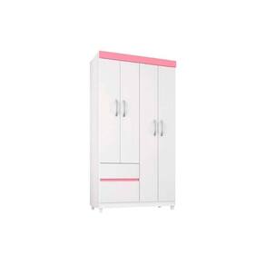 Guarda Roupa Solteiro 4 Portas e 2 Gavetas Lotus Branco/Rosa - Demóbile