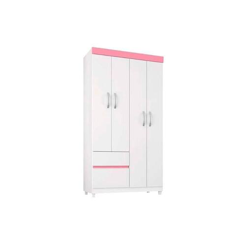 Guarda Roupa Solteiro 4 Portas e 2 Gavetas Lotus Branco/Rosa - Demóbile