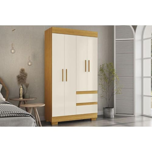 Guarda Roupa Solteiro 4 Portas e 2 Gavetas Maya Cinamomo/Off White - ACP