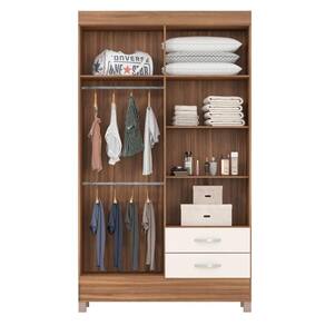 Com quatro portas e duas gavetas espaçosas, oferece amplo armazenamento para roupas, acessórios e objetos pessoais.