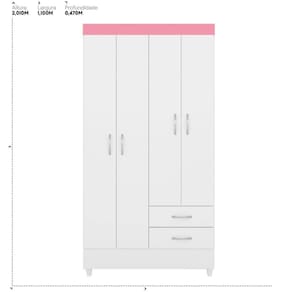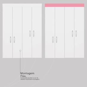 Com quatro portas e duas gavetas espaçosas, oferece amplo armazenamento para roupas, acessórios e objetos pessoais.