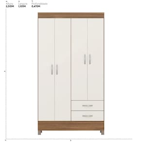 Com quatro portas e duas gavetas espaçosas, oferece amplo armazenamento para roupas, acessórios e objetos pessoais.