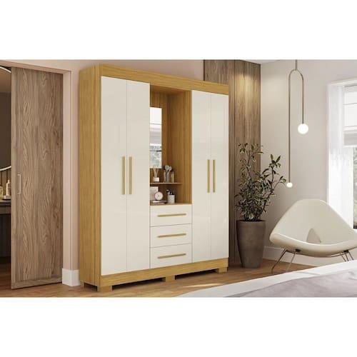 Guarda Roupa Solteiro 4 Portas e 3 Gavetas c/ 1 Espelho Emily Gold Nature/Off White - ACP Marca: ACP Móveis