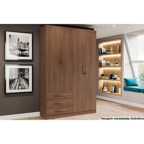 Tipo de Cabideiro - Aéreo Material dos Cabideiros - Cabideira Metálico Tipo de Dobradiças - Dobradiças Metálicas Tipo de Corrediça - c/ Corrediças Metálicas Quantidade de Gavetas - 3