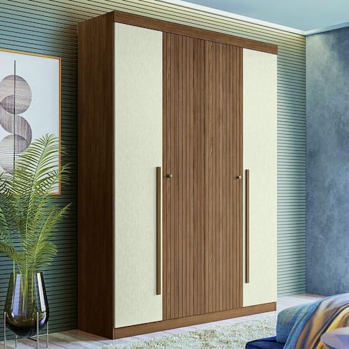 Guarda Roupa Solteiro 4 Portas Flex Buriti Santos Andirá Jatoba/areia O guarda-roupa Buriti possui design diferenciado e atemporal. Sao 2 delas em MDF com detalhe ripado e puxadores pontuais em ABS para abertura. As demais portas em MDP com puxadores em MDF revestido em formato alongado. Internamente, possui amplas prateleiras com muito espaco para guardar pertences, cabideiro e calceiro em aluminio para pendurar roupas, suas gavetas possuem corredicas telescopicas e suportam ate 3kg. Tambem possui compartimento-cofre para guardar pertences de valor. As frentes sao em acabamento REVERSE que e aliado a tendencia de decoracao, com um leve toque texturizado que garante qualidade premium ao movel. Tudo fabricado com todo o cuidado com o meio ambiente, usando processos sustentaveis de fabricacao. Caracteristicas Material da Estrutura: MDP e MDF Tipo de Acabamento: Pintura UV Quantidade de Portas: 4 Tipo de Abertura das Portas: Articuladas com dobradicas Metalicas Quantidade de Gavetas: 2 Tipo de Corredicas: Metalicas Telescopicas Tipo de Puxadores: Pontuais em ABS e Alongados em MDF revestido Quantidade de Prateleiras: 4 Itens Inclusos na embalagem: Guarda Roupa, kit ferragens e manual de montagem. Sistema de Montagem: Cavilhas, Parafusos e Minifix Recomendacao de Limpeza: Nao limpar com alcool ou qualquer outro produto quimico, utilize somente pano seco ou levemente umedecido. Garantia do Fabricante: 3 meses
