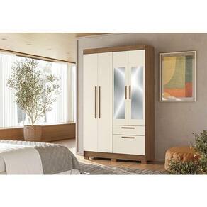 Guarda Roupa Solteiro 4 portas Londrina com espelho Jatobá Areia - Santos Andirá