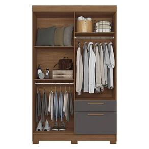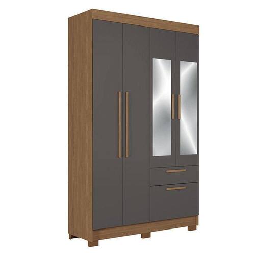 Guarda Roupa Solteiro 4 portas Londrina com espelho Jatobá Grafite - Santos Andirá