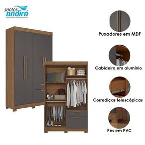Guarda Roupa Solteiro 4 portas Londrina Jatobá Grafite - Santos Andirá