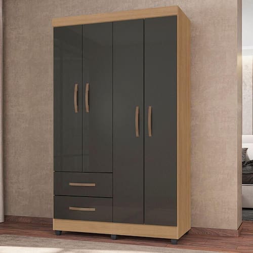 Feito em MDP. Contém 4 portas, 1 cabideiro em alumínio e 2 gavetas com corrediça telescópicas possobilitando a abertura total da gaveta com o deslizamento mais suave.