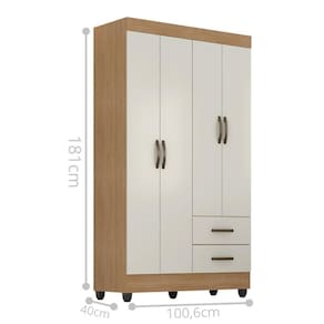 Feito em MDP. Contém 4 portas, 1 cabideiro em alumínio e 2 gavetas com corrediças metálicas facilitando a abertura e deslizamento.