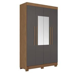 Guarda Roupa Solteiro 4 portas Sarandi com espelho Jatobá Grafite - Santos Andirá
