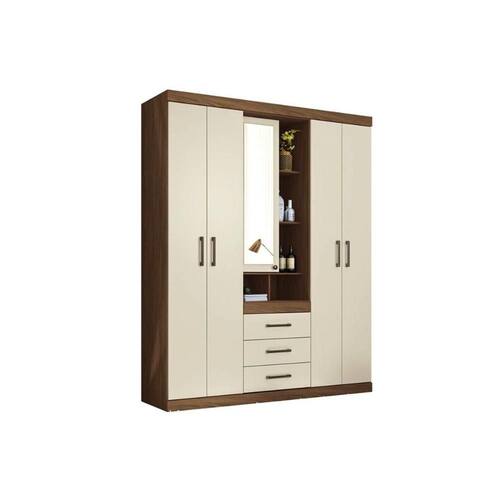 Guarda Roupa Solteiro 5 Portas e 3 Gavetas Havana Star 5.3 jatoba/Areia - Santos Andirá