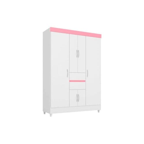 Guarda Roupa Solteiro 6 Portas e 2 Gavetas Ecom II Branco/Rosa - Demóbile