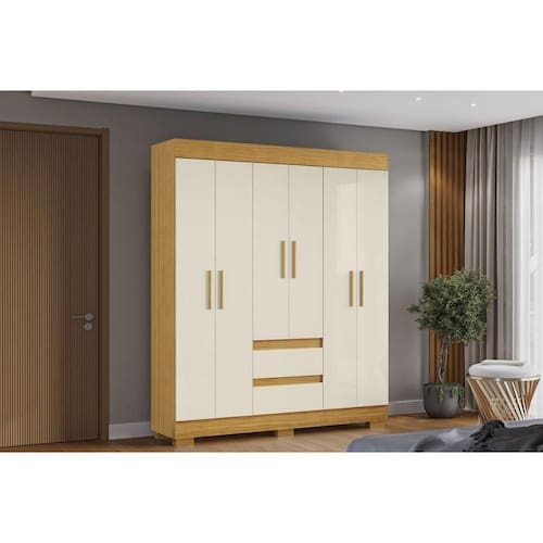 Guarda Roupa Solteiro 6 Portas E 2 Gavetas Maya Nature/off White - Acp