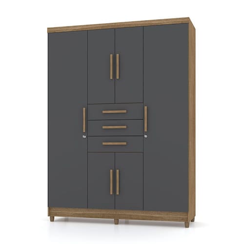 Com seis portas e três gavetas, o Guarda Roupa Imperial oferece amplo espaço interno, permitindo uma excelente organização dos itens. Suas prateleiras ajustáveis e cabideiros robustos facilitam a disposição de roupas de diferentes tamanhos, enquanto as gavetas são ideais para guardar peças menores e objetos pessoais. Cada detalhe é pensado para otimizar o uso do espaço, proporcionando praticidade no dia a dia.