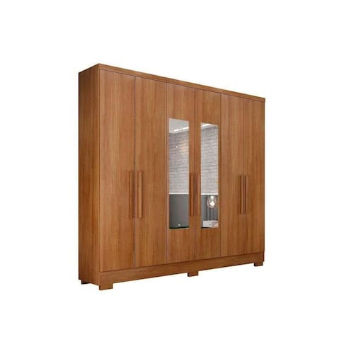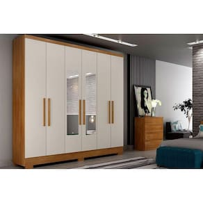 Guarda Roupa Solteiro 6 Portas e 4 Gavetas c/ Espelho e Pés Milly/Veneza Cumaru - Novo Horizonte Marca: Novo Horizonte