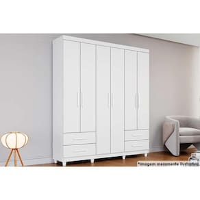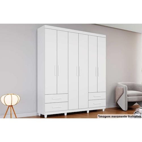 Guarda Roupa Solteiro 6 Portas e 4 Gavetas Canadá Branco - Conquista