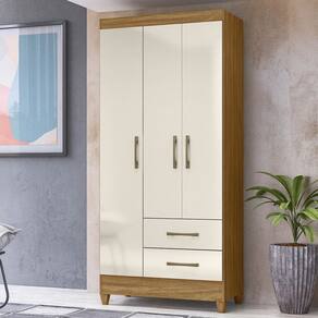 Guarda Roupa Solteiro 82cm 3 Portas Zeno Freijó/Off White Z17 - Mpozenato