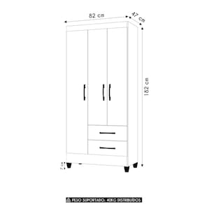 O Roupeiro também conta com prateleiras internas, você pode organizar roupas dobradas, acessórios ou itens pessoais com facilidade. As duas gavetas com corrediças metálicas garantem abertura suave e resistente no uso diário. Já o cabideiro em alumínio oferece maior resistência ao pendurar roupas para que não hajam preocupações.