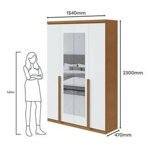 Guarda Roupa Solteiro Alonzo 4 Portas Amêndoa Clean Branco com Espelho - Lopas
