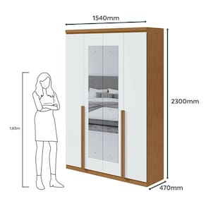 Guarda Roupa Solteiro Ambiente Alonzo 4 Portas Amêndoa Clean Branco com Espelho - Lopas