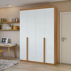 Guarda Roupa Solteiro Ambiente Alonzo 4 Portas Amêndoa Clean Branco - Lopas