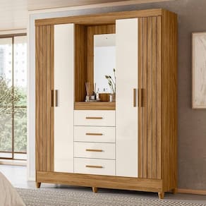 Guarda Roupa Solteiro Ambiente Atenas com Espelho 4 Portas Freijó Off White Moval
