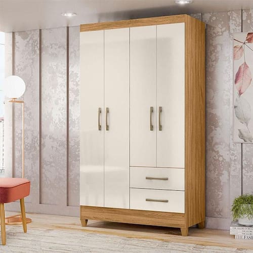 Guarda Roupa Solteiro Ambiente Chile 4 Portas Freijó Off White - Moval