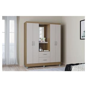 Guarda Roupa Solteiro Ambiente Cordoba 4 Portas Castanho Off White - Poquema