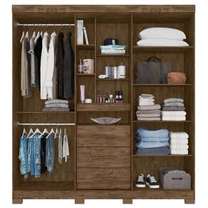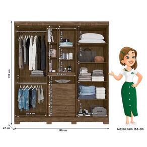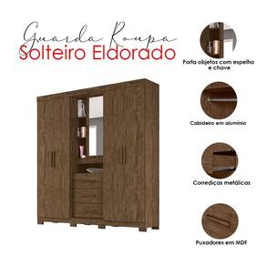 Guarda Roupa Solteiro Ambiente Eldorado 5 Portas Castanho Wood com Espelho - Moval