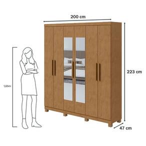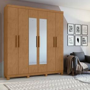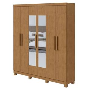 Guarda Roupa Solteiro Ambiente Jazz 6 Portas Amêndoa Clean com Espelho e Pés ? Lopas
