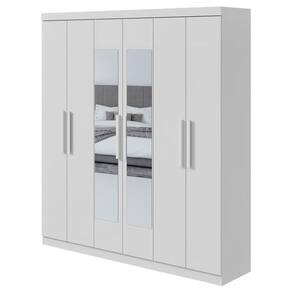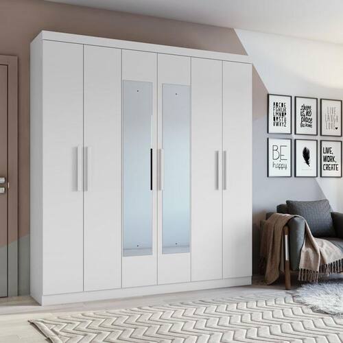 Guarda Roupa Solteiro Ambiente Jazz 6 Portas Branco Brilho com Espelho – Lopas