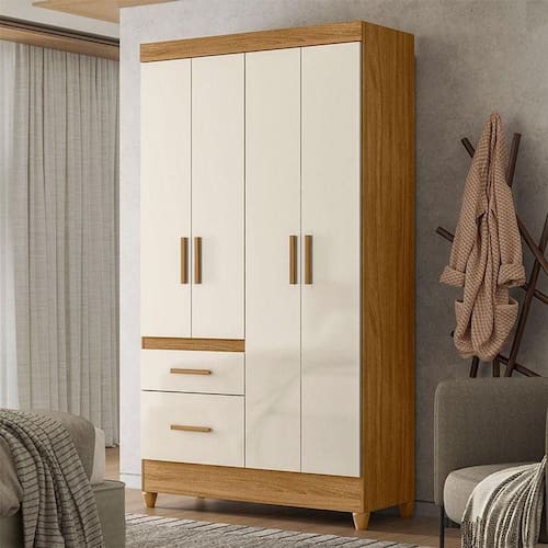 Guarda Roupa Solteiro Ambiente Madri 4 Portas Freijó Off White - Moval