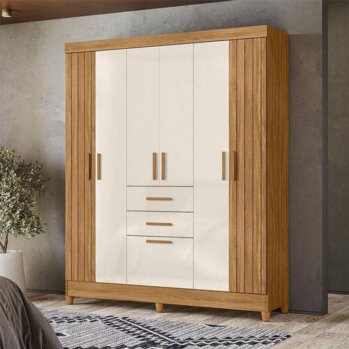 Guarda Roupa Solteiro Ambiente Malta 7 Portas Freijó Off White - Moval
