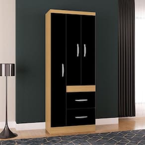 Guarda Roupa Solteiro Milão 3 Portas Damasco Preto – Poquema