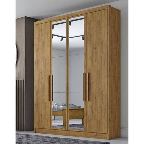 Guarda Roupa Solteiro Ambiente Sevilha 4 Portas 3 Gavetas Cumaru 23 com Espelho – Novo Horizonte