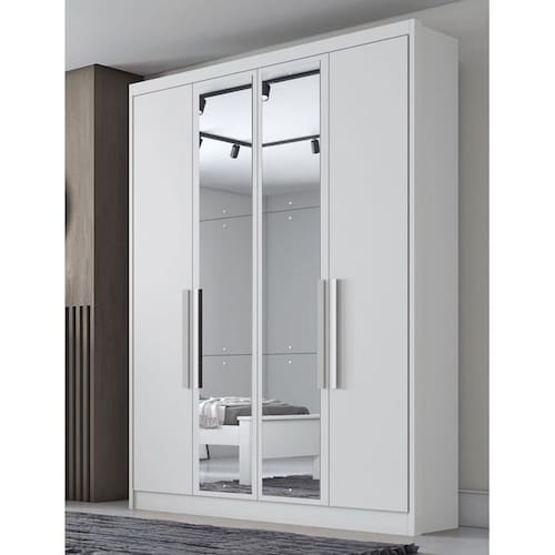Guarda Roupa Solteiro Ambiente Sevilha 4 Portas 3 Gavetas Neve com Espelho – Novo Horizonte