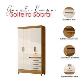 Guarda Roupa Solteiro Ambiente Sobral 4 Portas Freijó Off White - Moval