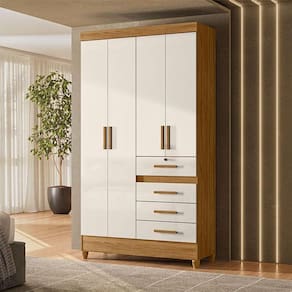 Guarda Roupa Solteiro Ambiente Sobral 4 Portas Freijó Off White - Moval