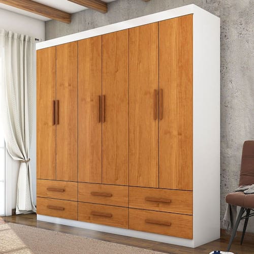O(a) Guarda-Roupa Solteiro Aria 6 Portas 6 Gavetas Branco/Cinamomo - Pnr Móveis é produzido em MDP na escala de brilho Fosco e Semi-Brilho, e possui um grau de dificuldade de montagem: Médio.